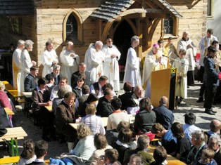Die Kapelle erfreut sich vieler Wallfahrer und steht für Pilgergruppen jederzeit zur Verfügung O Blut und Wasser, aus dem Herzen Jesu als Quelle der Barmherzigkeit fuer uns entstroemt, Jesus, ich vertraue auf Dich |